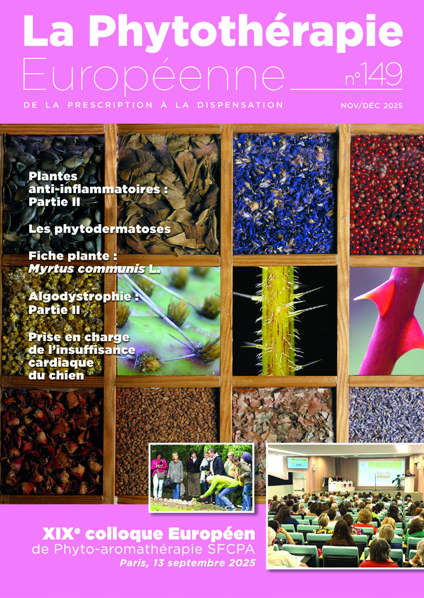 Animée par Danielle Roux, pharmacien et son comité de rédaction composé d'universitaires, chercheurs et praticiens de santé, La Phytothérapie Européenne, de la prescription à la dispensation offre une lecture aisée et agréable d'articles toujours originaux promotionnant une phyto-aromathérapie moderne, profitant des derniers acquis scientifiques. Dans le but de privilégier une approche globale du patient et faciliter une prescription ou un conseil rapide, la revue accueille aussi des articles concernant d'autres médecines naturelles alternatives ou complémentaires pouvant éclairer le thérapeute ou entrer en synergie telles l'oligothérapie et l'homéopathie...